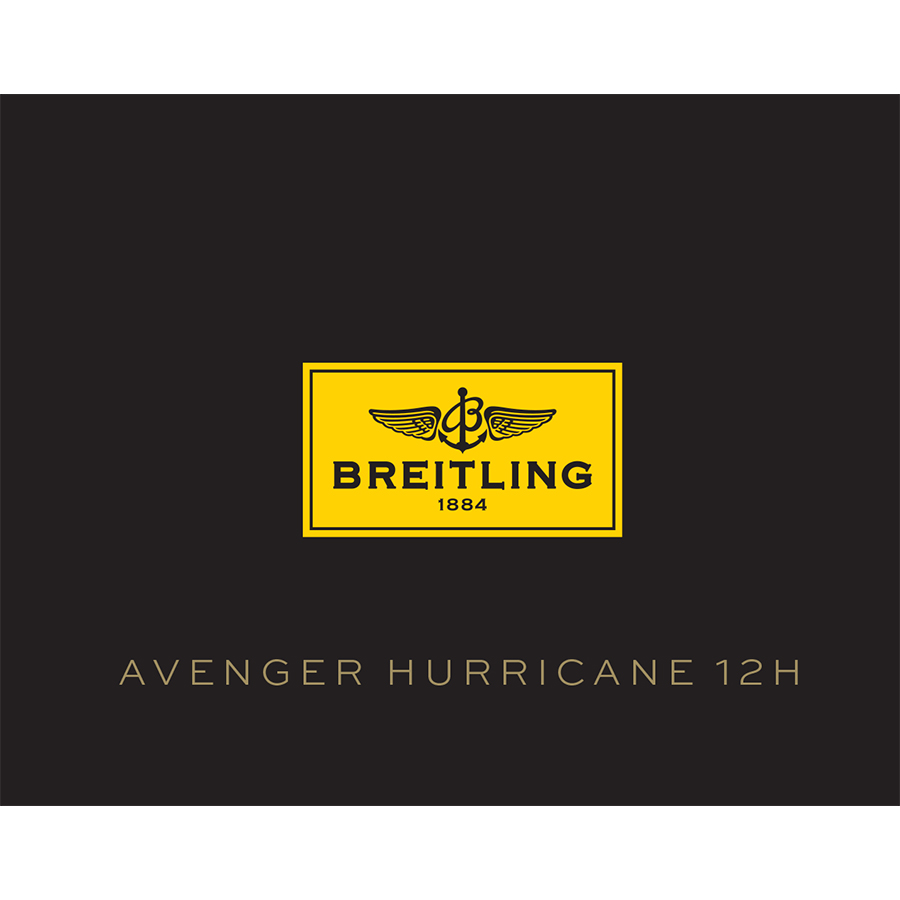 Breitling Avenger Hurricane XB01701A/BF92-100W men's watch. Limited Edition, Numbered out of 250 ever made. Features a matte black polymer case and anthracite canvas strap. Matte black polymer unidirectional rotating bezel. Black dial with luminescent hands and markers. Arabic numeral hour markers. Date displayed in dial aperture between 4 and 5 o'clock. Chronograph with large central yellow-tipped chronograph seconds hand, 30 minute counter sub-dial at 3 o'clock and 12 hour counter sub-dial at 6 o'clock. Small seconds sub-dial at 9 o'clock. Powered by the Breitling Caliber B01 self-winding automatic COSC Chronometer certified movement which boasts a 70 hour power reserve, beats at 28,800 vph and contains 47 jewels. A scratch resistant sapphire crystal protects the dial. The case is round, 50mm in diameter and 16.97mm thick. Inlet size: 24mm. Screw down crown and case back. Tang buckle. Water resistant to 100 meters / 330 feet. Functions: hours, minutes, small seconds, date, chronograph. Sport watch style. Swiss made.