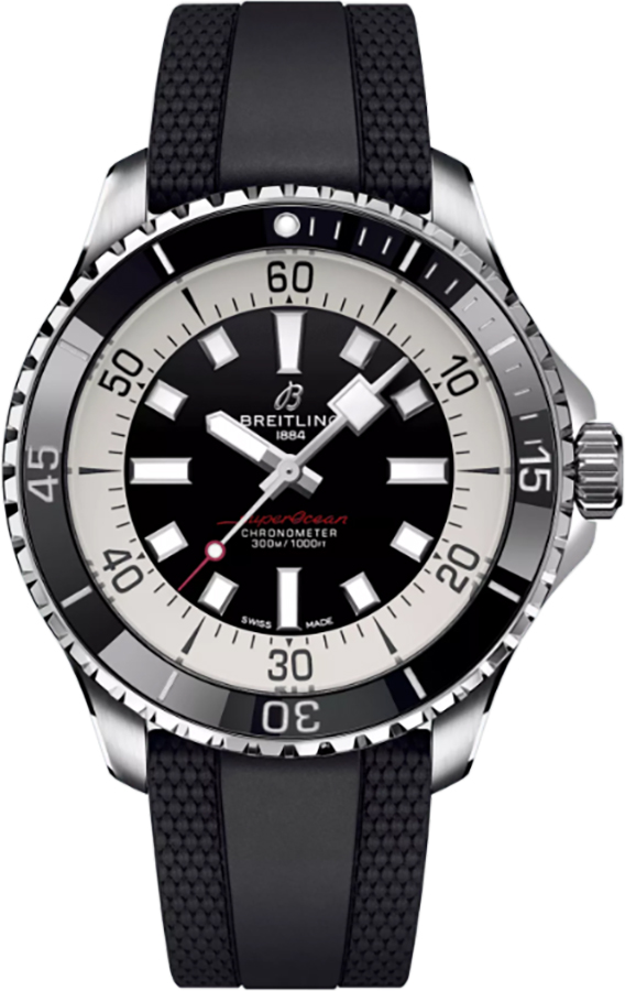 This classic Superocean Automatic 44 watch model A17376211B1S1 from Breitling is the perfect mix of style and function. Featuring a 44mm stainless steel case paired with a black ceramic bezel, this timepiece adds elegance to any outfit. The black dial has index hour markers for easy telling of the time, while the black rubber strap and deployment buckle make for a comfortable fit. Inside, you'll find an automatic chronometer-certified movement that will keep you running on time for years to come. Get ready to take on your day in style with the Breitling Superocean Automatic 44!