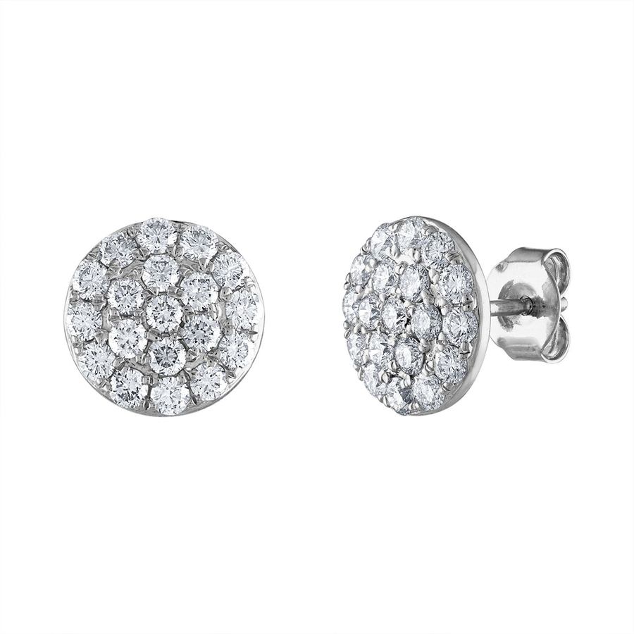 Diamond Cluster Earrings, 1.10 Carat on Solid 18k White Gold E148WDIA