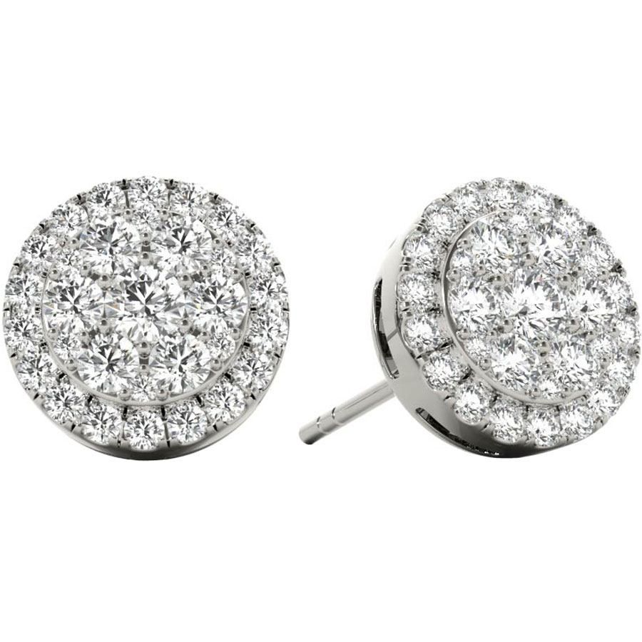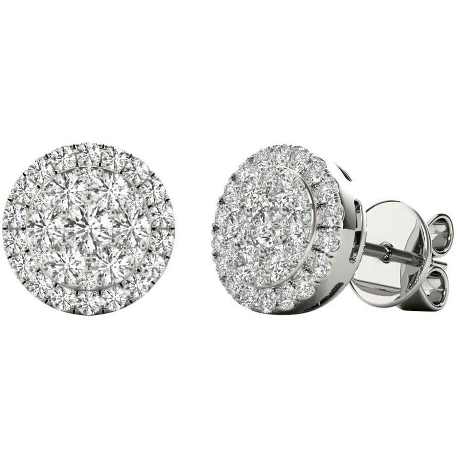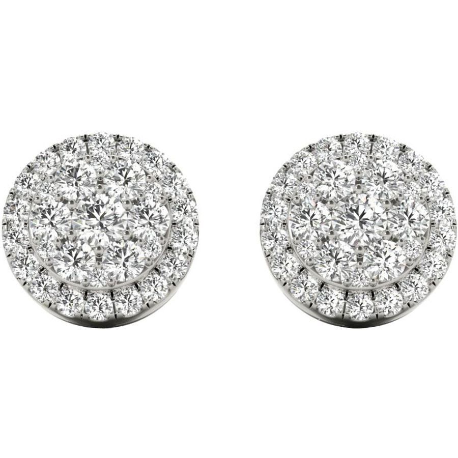 Diamond Halo Pave Earrings, 0.43 Carat on Solid 18k White Gold E20236W