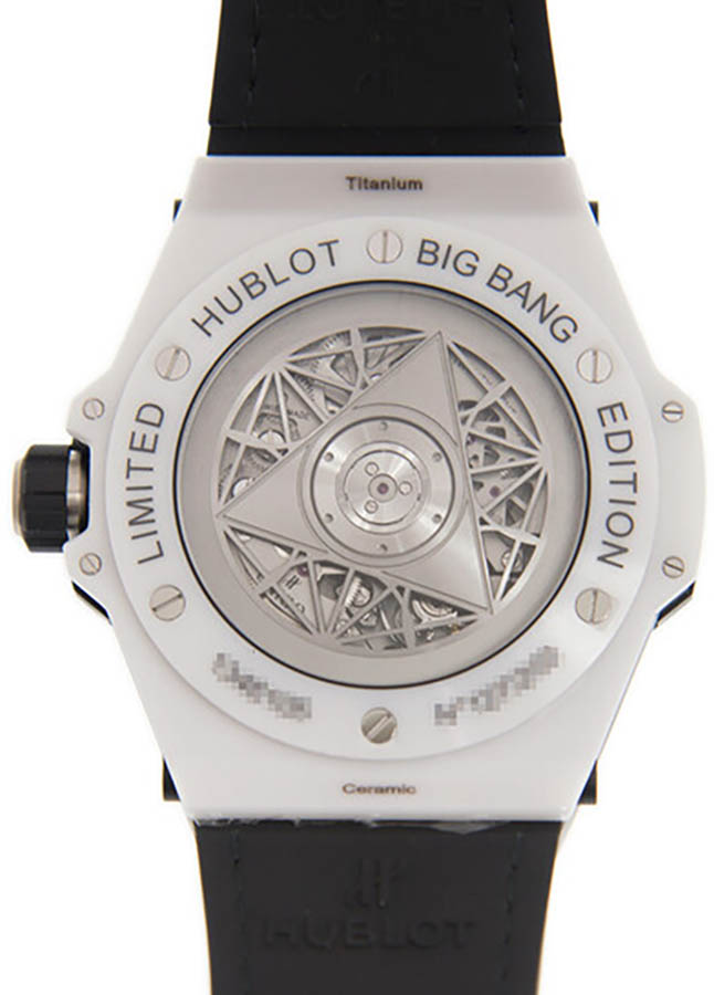 The Hublot Big Bang Sang Bleu 415.HX.2027.VR.MXM19 is a luxurious and sporty timepiece with a unique style. This watch features a white dial with Arabic numeral hour markers, housed in a 45mm white ceramic case with matching bezel, and fastened with a comfortable white leather and rubber strap featuring a deployment buckle for easy adjustment. Powering the watch is an automatic movement for reliable operation and accuracy over time. With its timeless design and classic appeal, this watch is perfect for any occasion or to add an extra touch of sophistication to your look.