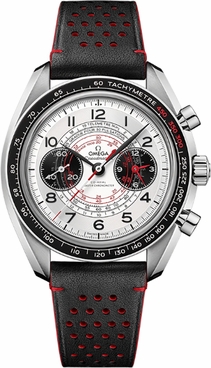 Make a bold statement with the Omega Speedmaster Chronoscope 329.32.43.51.02.001 watch! This stunning timepiece features a 43mm stainless steel case, black aluminum bezel with tachymeter, and silver dial decorated with elegant Arabic numeral hour markers. It is powered by a precise manual chronometer-certified movement and includes chronograph, telemeter, and pulsometer functions for enhanced measurements and convenience. The perforated black leather strap has a red interior and is secured with a tang buckle for added security and comfort on the wrist. Whether you’re out for a night on the town or attending an important event, this classic and sporty luxury watch from Omega will make sure you always look your best!