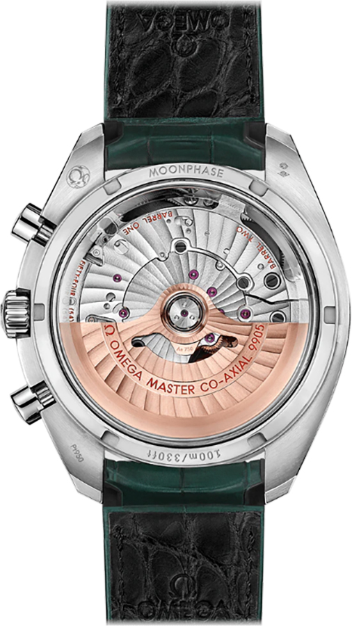 The Omega Speedmaster Moonphase 304.93.44.52.99.003 combines luxurious style with classic sports elegance for an unparalleled timepiece. Featuring a platinum case fitted with a green leather strap, this chronograph features a grey dial with emerald index hour markers, date display, moonphase disc at 6 o'clock, foldover clasp, and an automatic anti-magnetic chronometer-certified movement ensuring accuracy and precision. The 44.25mm size is perfect for everyday wear whether you're out running errands or attending a formal event. With exceptional craftsmanship and timeless styling, the Omega Speedmaster Moonphase 304.93.44.52.99.003 will be your go-to watch for any occasion!