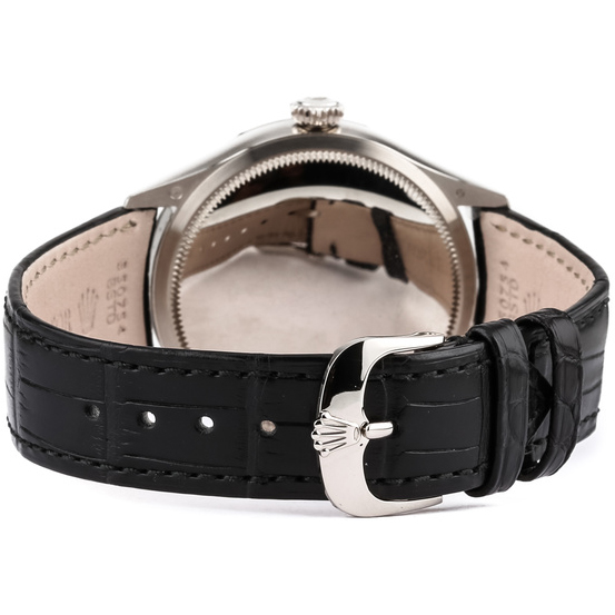 This beautiful Rolex Cellini Dual Time 50529-0007 is an exquisite watch that exudes quality and luxury. Featuring a 39mm 18k white gold case, a black dial with index hour markers, and a domed and fluted bezel, this timepiece is perfect for the sophisticated wearer. The black leather strap fits comfortably on your wrist while the tang buckle keeps it secure. The GMT second time zone ensures that you are always on time wherever in the world you may be with the automatic chronometer-certified movement. With all of these features, this Rolex watch is sure to make an impression wherever you go.