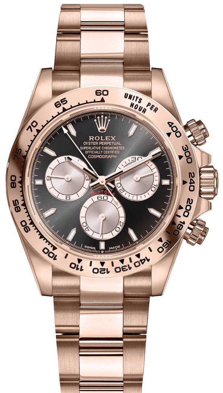 Experience the exquisite craftsmanship and timeless elegance of the Rolex Cosmograph Daytona 126505-0001. This luxury timepiece features a bright black and sundust dial adorned with index hour markers, complemented by a sophisticated chronograph function. Encased in a 40mm 18k Everose gold case, the bezel is intricately engraved with a tachymeter scale for precision measurement. The Oyster bracelet secures comfortably with a folding Oysterlock safety clasp, while the automatic movement ensures reliable timekeeping as a certified chronometer. Elevate your style with the unparalleled sophistication of this Rolex masterpiece.
