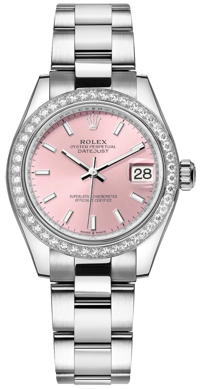 Discover timeless elegance with the Rolex Datejust 31 278384RBR-0017. This exquisite timepiece features a 31mm stainless steel case paired with an 18k white gold bezel adorned with sparkling diamonds. The pink dial is accented with index hour markers and a convenient date display. Equipped with an automatic movement and certified chronometer, this watch offers both precision and style. The oyster bracelet with oysterclasp ensures a secure and comfortable fit for everyday wear. A perfect blend of sophistication and luxury, the Rolex Datejust 31 is a stunning addition to any collection.