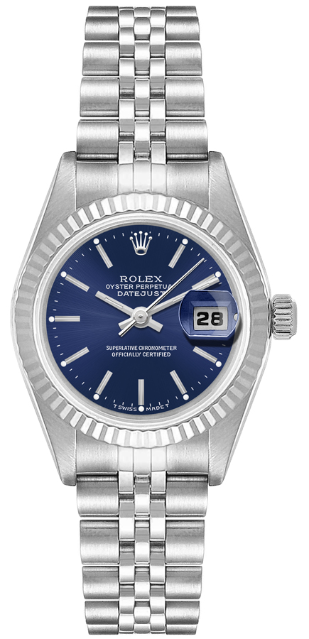 A timeless classic, this Rolex Datejust 31 68274 is the perfect choice for those seeking a luxurious watch with high quality features. The 31 mm stainless steel case is complemented by an 18k white gold fluted bezel and a jubilee bracelet, fastened with a deployment buckle. The blue dial is adorned with index hour markers and a date window at 3 o’clock. This watch is powered by an automatic, chronometer-certified movement, providing accuracy and reliability. With its exquisite craftsmanship and stunning design, this Rolex Datejust will add sophistication to any look.