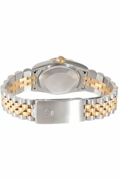Discover timeless elegance with the Rolex Datejust 31 68273 watch. This exquisite timepiece features a champagne dial accented with sparkling diamond hour markers, adding a touch of luxury to your ensemble. The 31mm stainless steel case is complemented by a solid 18k yellow gold fluted bezel for a sophisticated look. The two-tone jubilee bracelet with a deployment buckle ensures a comfortable and secure fit, while the automatic chronometer movement provides precision timekeeping. Elevate your style with this stunning Rolex watch that effortlessly combines quality craftsmanship with refined design.