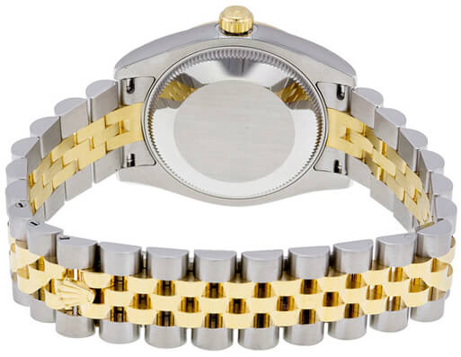 The Rolex Datejust 31 Women’s watch M178343-0013 is an authentic Swiss-made luxury watch which features a polished 904L Oystersteel stainless steel case with screw down crown with Twinlock double waterproofness system. The two tone solid 18k yellow gold with brushed 904L Oystersteel stainless steel jubilee bracelet has a concealed folding crownclasp deployment buckle. A sleek floral motif champagne dial is adorned with Arabic numeral 6 hour marker and a date aperture at the 3 o’clock position encompassed in polished solid 18k yellow gold domed bezel set with diamonds. This eye-catching watch is driven by Self-winding automatic movement and a 48 hour power reserve.