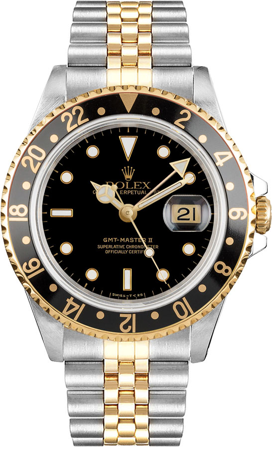 The Rolex GMT-Master II 16713LN is a beautiful timepiece that exudes luxury and style. This watch features a black dial, an 18k yellow gold bezel with a black aluminum bezel insert, a stainless steel case, and a two-tone jubilee bracelet. It's powered by a self-winding automatic superlative chronometer-certified movement and has a date window under the cyclops lens at 3 o'clock. Whether you're dressing up for a special occasion or just want to add a touch of elegance to your everyday look, this watch is sure to turn heads.
