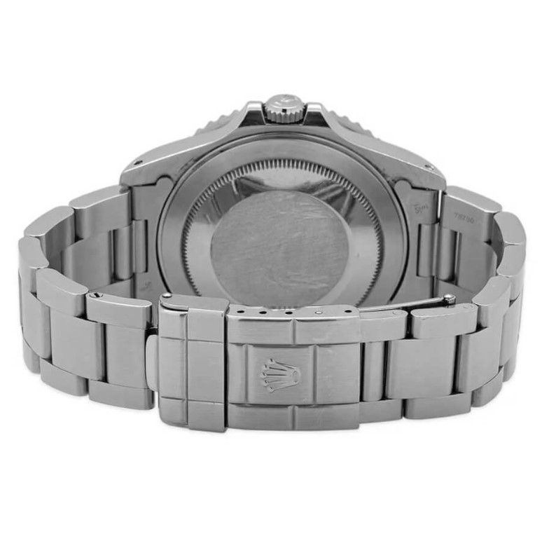 Rolex GMT-Master II Coke Men's Watch 16710. This 40mm watch, nicknamed 'Coke', features a brushed 904L Oystersteel stainless steel case and Oyster bracelet. The black dial has dot hour markers. The date is displayed under a cyclops lens at 3 o'clock. It is powered by a COSC Superlative Chronometer certified self-winding automatic movement.