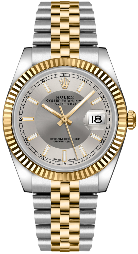 - Solid 18k Yellow Gold with 904L Oystersteel Stainless Steel Jubilee Bracelet
