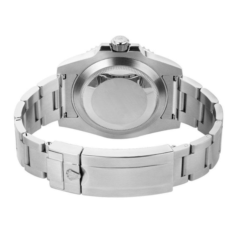 Rolex Submariner 114060 Mens Watch. Features a brushed and polished 904L Oystersteel Stainless Steel case and Oyster bracelet. The Unidirectional rotating bezel has a black Cerachrom ceramic insert with a 60 minute scale that has platinum coated numerals and graduations. The black dial is highly legible, featuring a Chromalight display with long lasting blue luminescence in the hands and hour markers. Dial type is analog. Powered by the Rolex Caliber 3130 self-winding automatic chronometer certified movement which boasts a 48 hour power reserve. Has a scratch resistant sapphire crystal protecting the dial. The case is round and 40mm in diameter. The crown screws down using a Triplock triple waterproofness system. The case back is screwed in. The buckle is a folding Oysterlock safety clasp with Rolex Glidelock extension system. Waterproof to 300 meters / 1000 feet. Functions: hours, minutes, seconds. Luxury watch style. Swiss Made.
