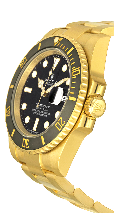 - Solid 18k Yellow Gold Bezel with Black Cerachrom Insert Ceramic Bezel