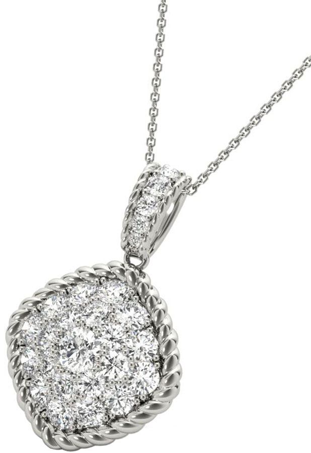 NEW DIAMOND SQUARE PENDANT, 1.41 Carat ON SOLID 18K WHITE GOLD WOMEN'S NECKLACE