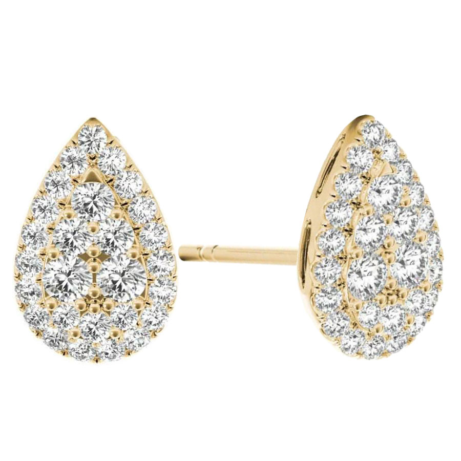 NEW SOLID 18K YELLOW GOLD DIAMOND PAVE HALO PEAR SHAPED WOMEN'S EARRINGS FOR SALE