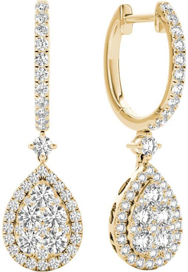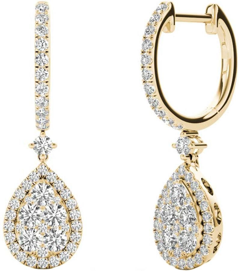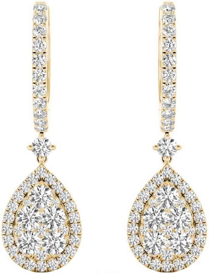 NEW 18K YELLOW GOLD DIAMOND PAVE HALO PEAR SHAPED WOMEN'S EARRINGS FOR SALE
